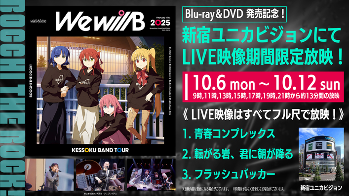 『結束バンド TOUR “We will B”』Blu-ray&DVD発売を記念して、西武新宿駅前のユニカビジョンにて「結束バンド」特集を放映!