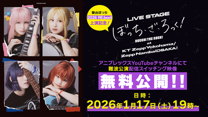 LIVE STAGE「ぼっち・ざ・ろっく!」2026 RE:boot の上演を記念して、LIVE STAGE「ぼっち・ざ・ろっく!」シリーズ4作品をアニプレックス公式Youtubeチャンネルにて無料プレミア公開!
