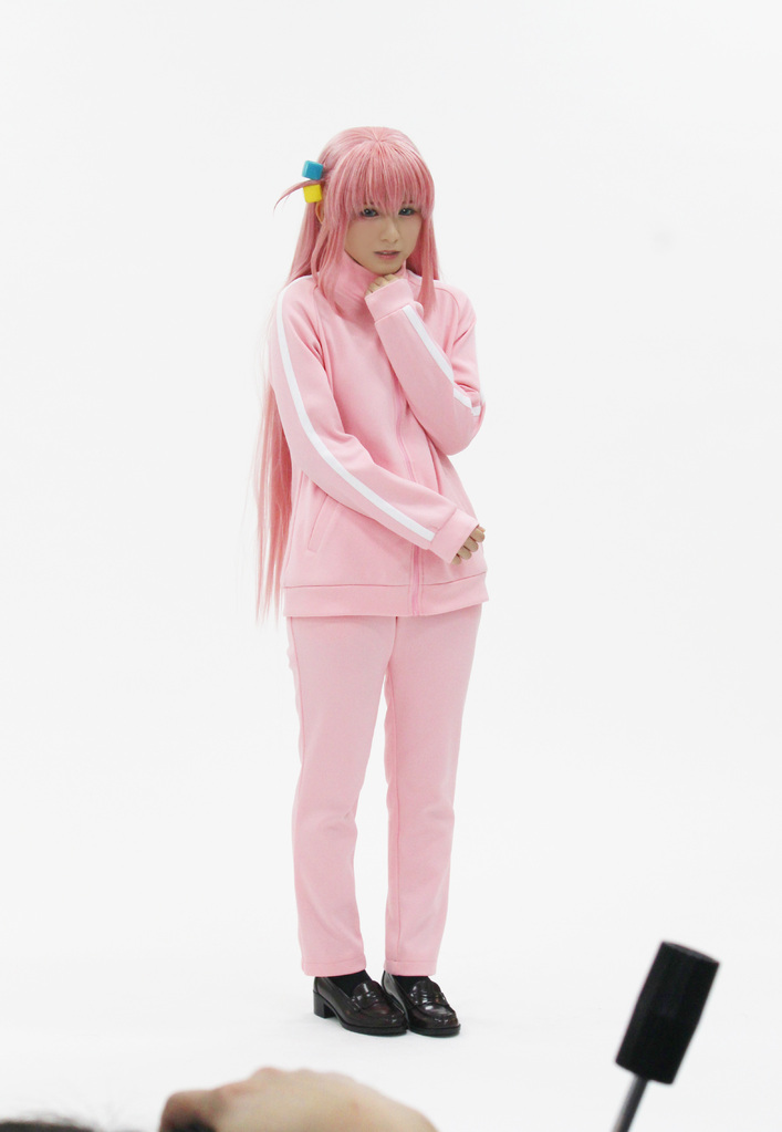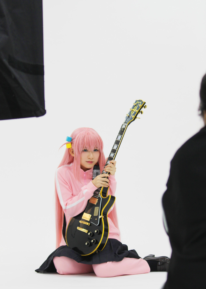 先日おこなったライブ(魔物大戦 vol.1)も含めて、ふだんはギター・ボーカルなので前を向いて演奏をしていますが、ぼっちちゃんはずっと下を向いているので、そこが違う点です。でも実は私もぼっちちゃんのように下を向いて演奏したいんですよ。恥ずかしいから前を向きたくないし、手元がよく見えるので。だから舞台で演奏しているときは、前を向かなくてよかったので気分がちょっと楽でした(笑)。でも下を向いていると髪(ウィッグ)がギターと指にかかってしまうことがあって、からまらないように気をつけていました。