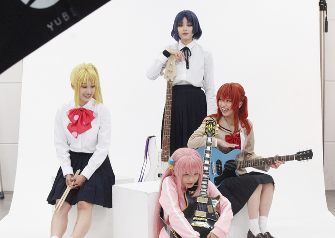 大森未来衣(喜多郁代役):撮影を始めてから、あの時の感覚がだんだんよみがえって来るのを感じました。ソロショットだけではなく、“結束バンド”の4人で撮ったりもしているのですが、公演の時の思い出が頭をよぎったりして…。この4人でいると落ち着きますし、ホームに戻ってきたような気持ちです!